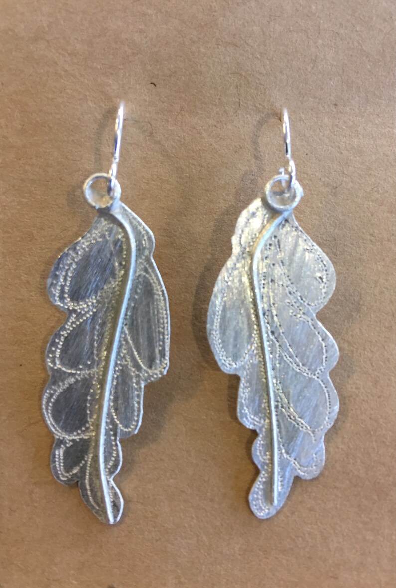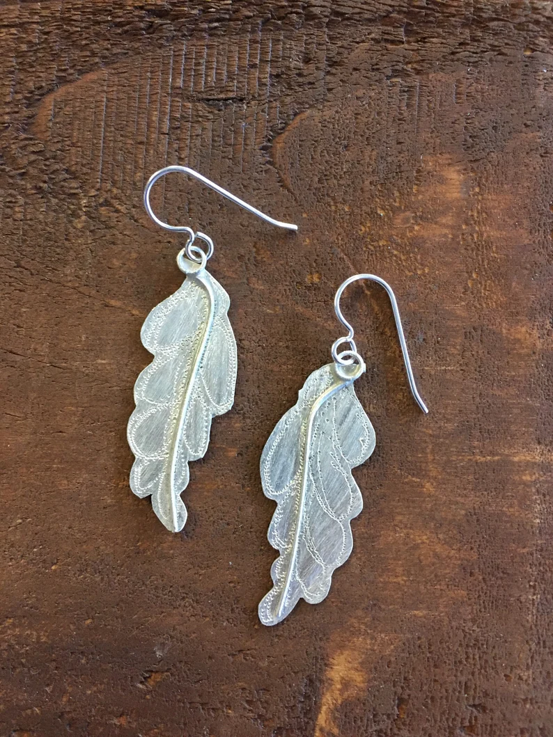 Delicately cutout leaves that are light like clouds. Brushed to a subtle organic finish. Sterling earwires.