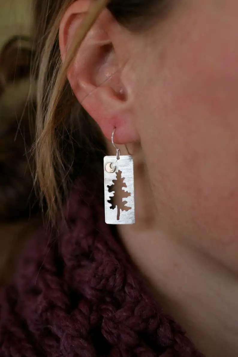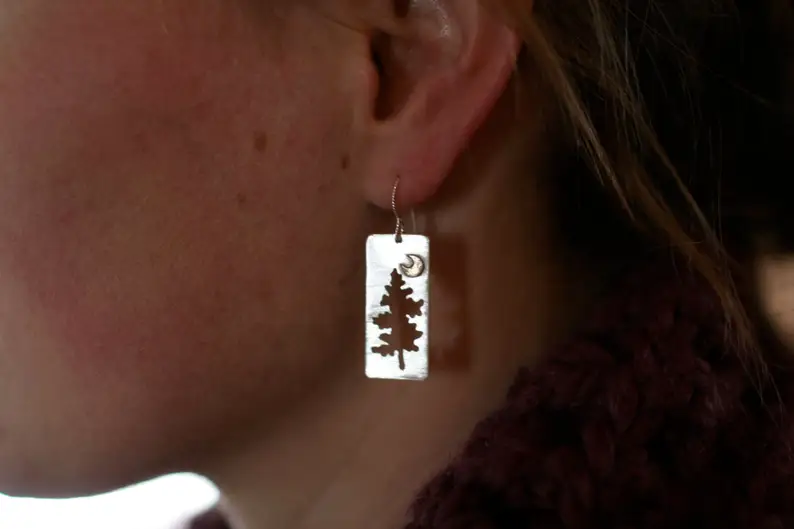 Half Moon Pine Rectangular Earrings