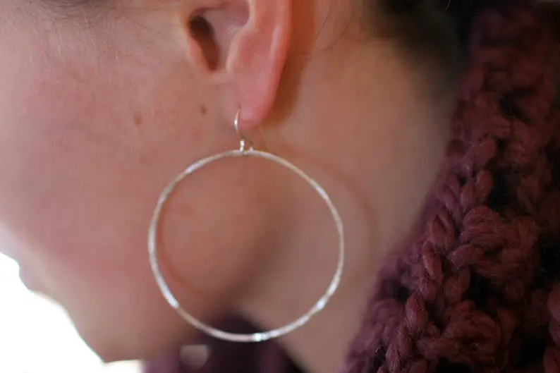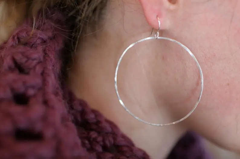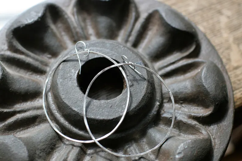Thin, hammered sterling silver hoops. Delicate and fun. 2 1/8”, sterling silver wires.